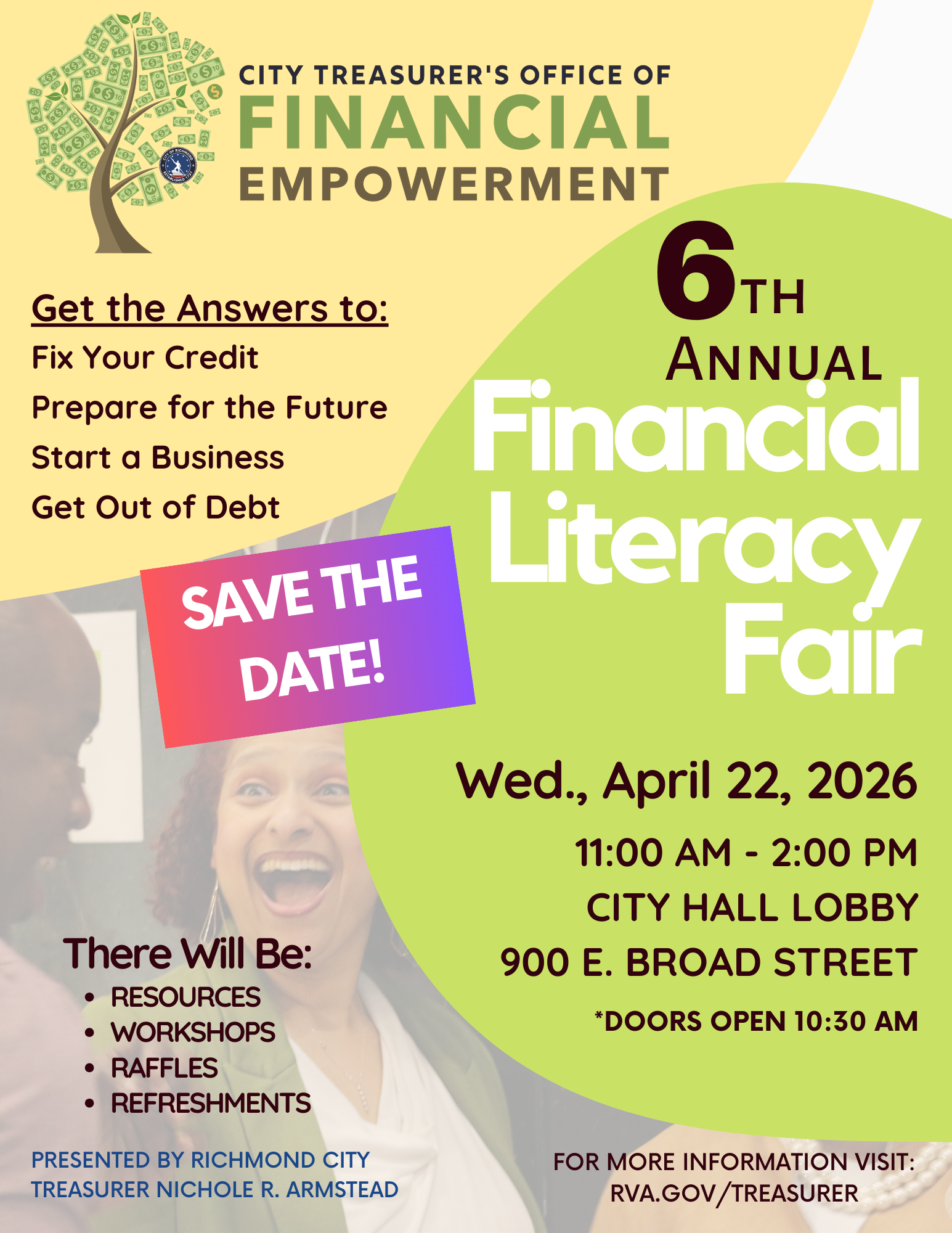 The Financial Literacy Fair brings Richmond residents and City employees together with trusted community partners and vendors to explore resources that support financial wellness. Attendees can expect resource tables, onsite workshops, giveaways, prizes, and refreshments.