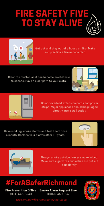 The Richmond Department of Fire and Emergency Services wants to remind residents of the “Fire Safety Five to Stay Alive”: