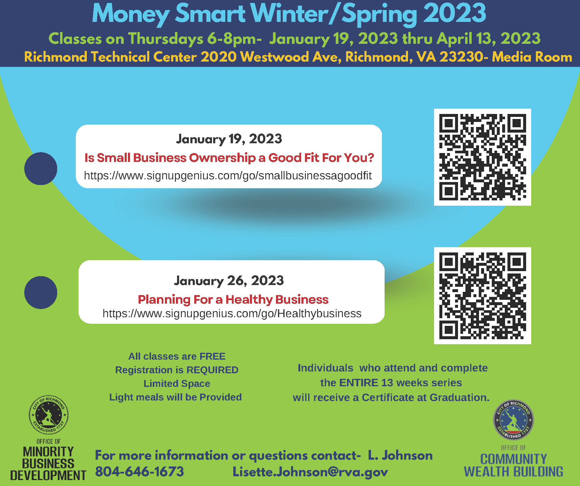 The Office of Minority Business Development offers classes to help you build your small/minority-owned business. From creating a business plan to monitoring your credit, we're here to help educate you!