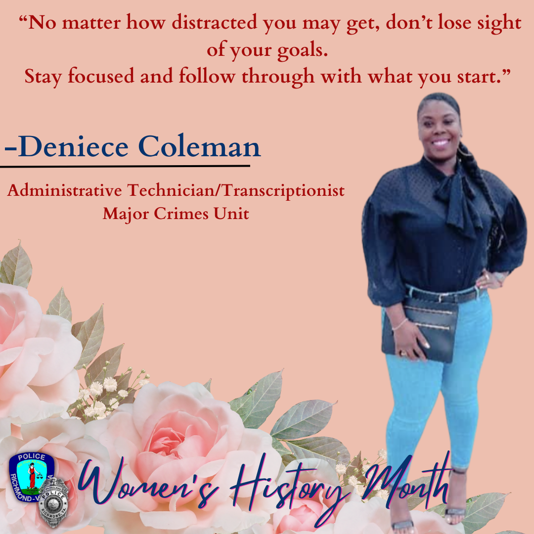 I am the first woman in my family born with all my constitutional rights. Some people don’t understand that 50 years ago in Richmond, Virginia, this version of a woman did not exist. I feel compelled to celebrate being a woman. Nobody looks like me when I walk into meetings with other law enforcement agencies in Virginia. I am doing what few others can say they have done. I believe in my purpose.